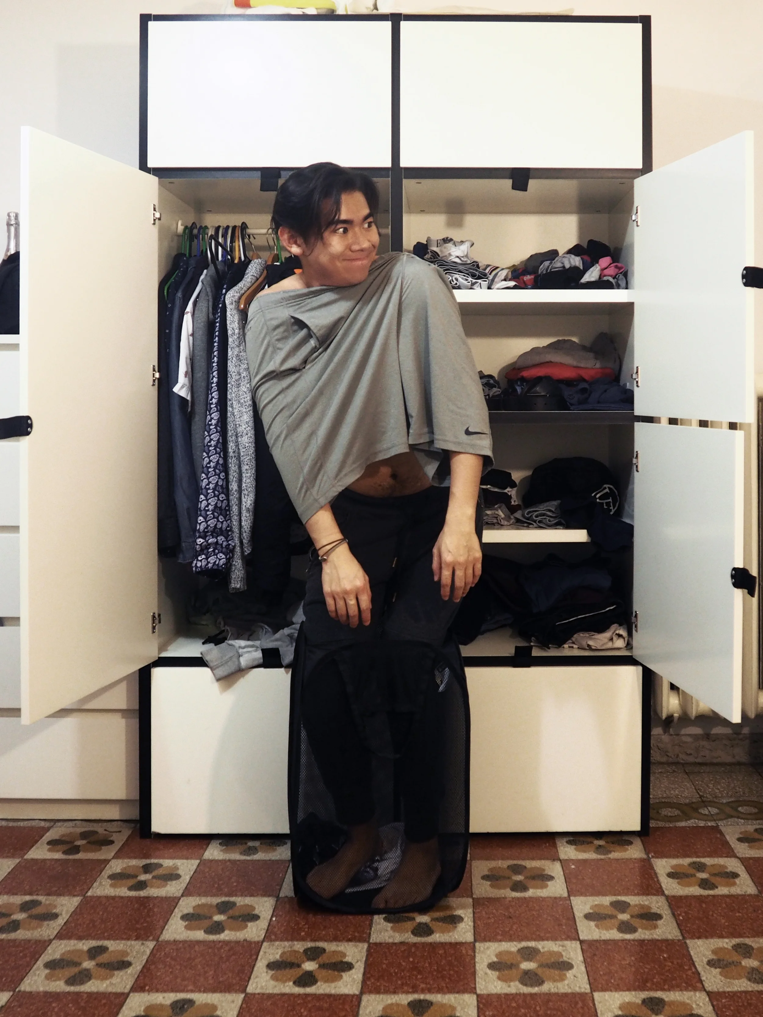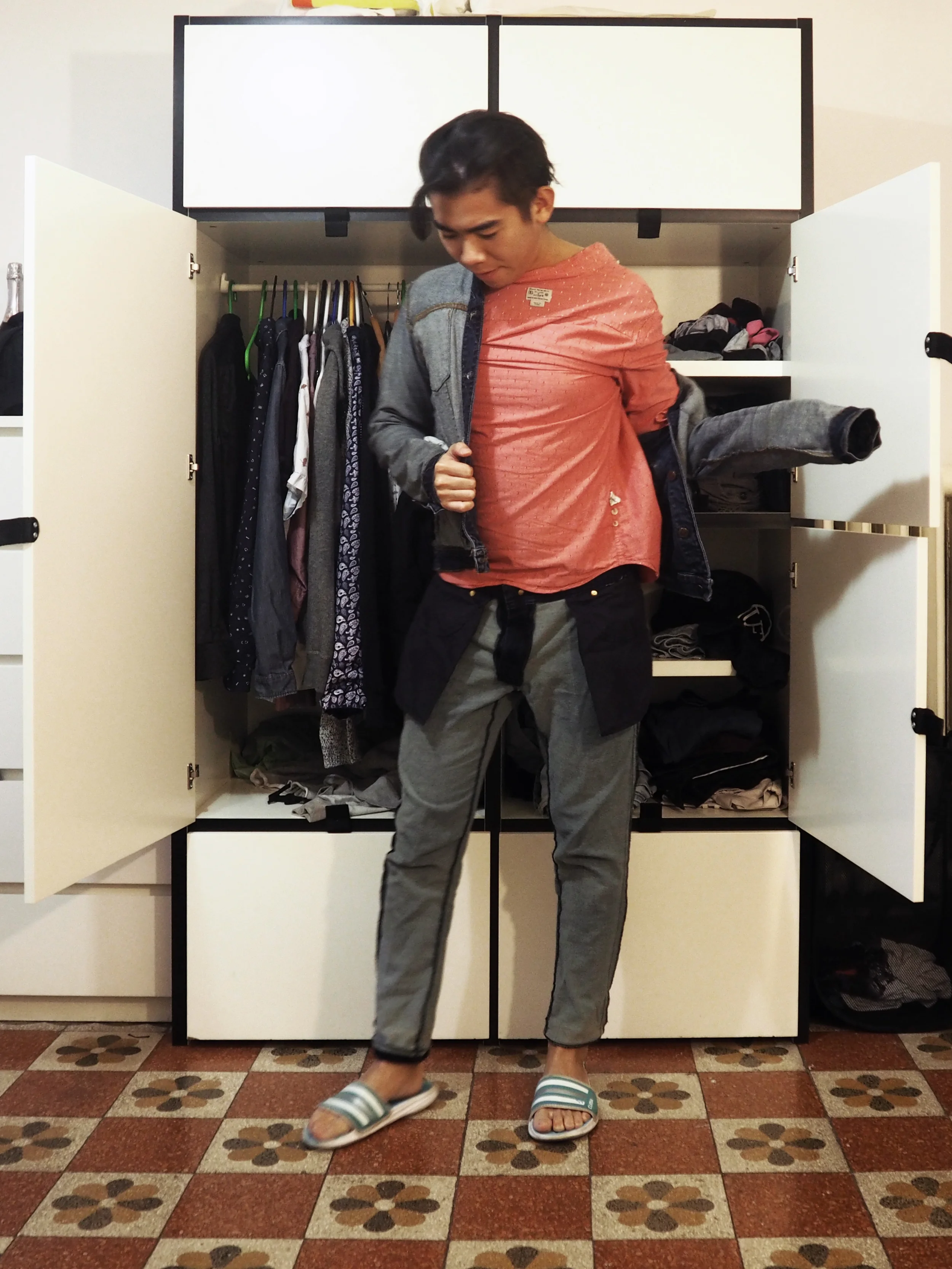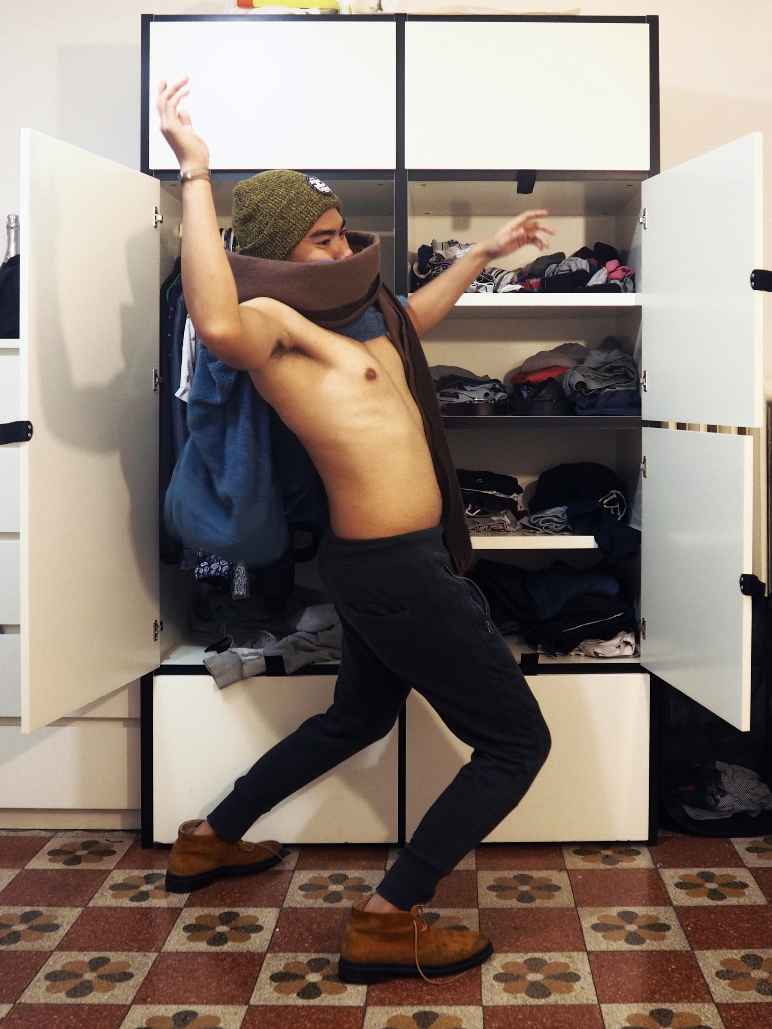 This is a self-portrait series which shows a very personal aspect of myself: my clothes and how I dress. I am a person who cares about fashion and what I wear immensely. This photo series defies that aspect of me by showing a completely random and unorthodox way of dressing. I simply just took out any items from my closet and put them on my body without any rules or order. It is a playful selection of portraits which initially seems silly and random, but provokes certain type of intimate feeling and emotions from myself.